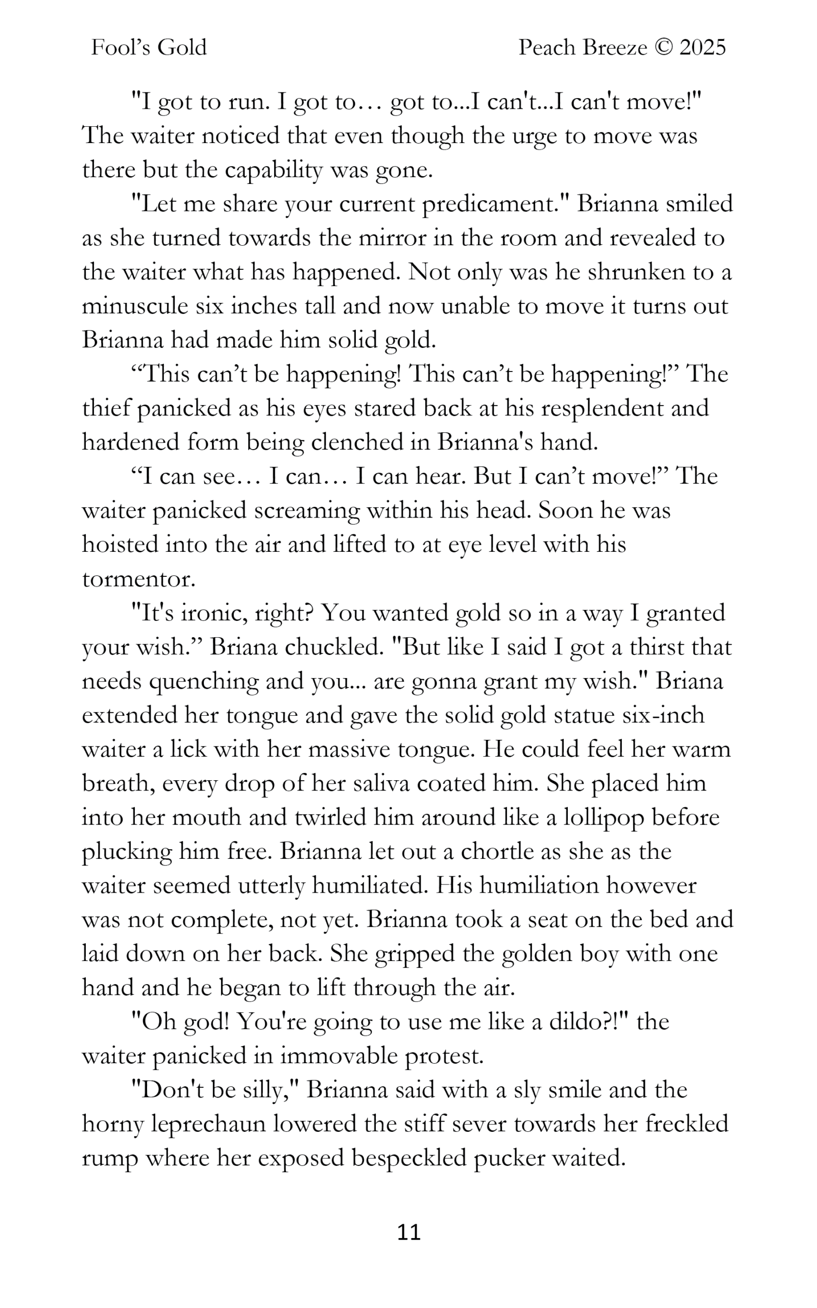 Tags: Anal Insertion, Aware, Belching, Big Beautiful Woman, Boobs, Breast Smothering, Butt, Cruel, Domination, Fantasy, Farting, Female Pred, Femdom, Giantess, Handheld, Human, Humiliation, Leprechaun, Licking, Magic, Male Prey, Masturbation, Mouth Play, Nudity, Pleasure, Revenge, Sex Toy, Shrinking, Shrunken Man, Sniffing, Stink Play, Stripper, Supernatural, Sweaty, Teasing, Tormenting, Transformation, Undressing