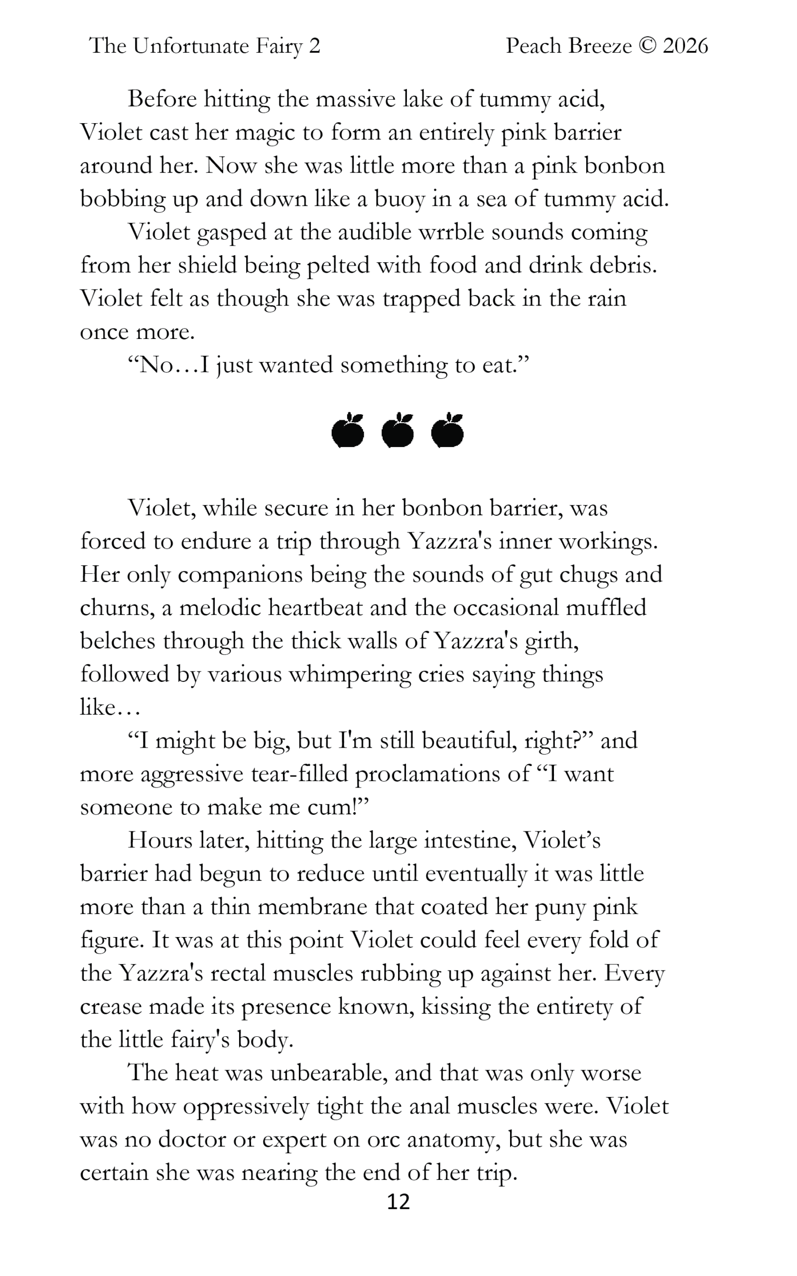 Premise: The unfortunate fairy, Violet, has survived the smelly confines of the tree stump and is not searching for a filling meal. Unfortunately, sneaking into a local tavern in an effort to steal some food has caused her to become an accidental bite-sized snack for Yazzra’s ravenous depression fueled feast due to a case of Heartsgiving heartache.